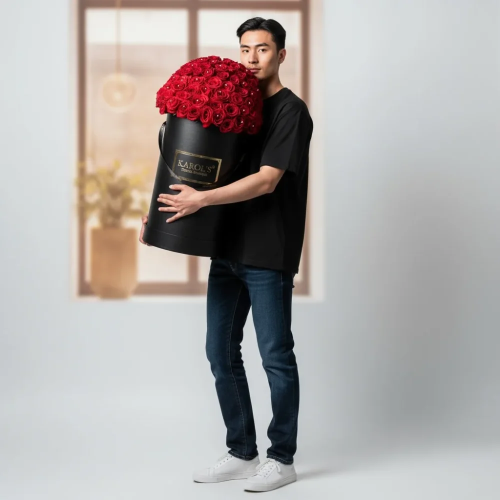 Fina caja de lujo de 1 mts de 200 Rosas Rojas 🌹 y diaamantes 💎