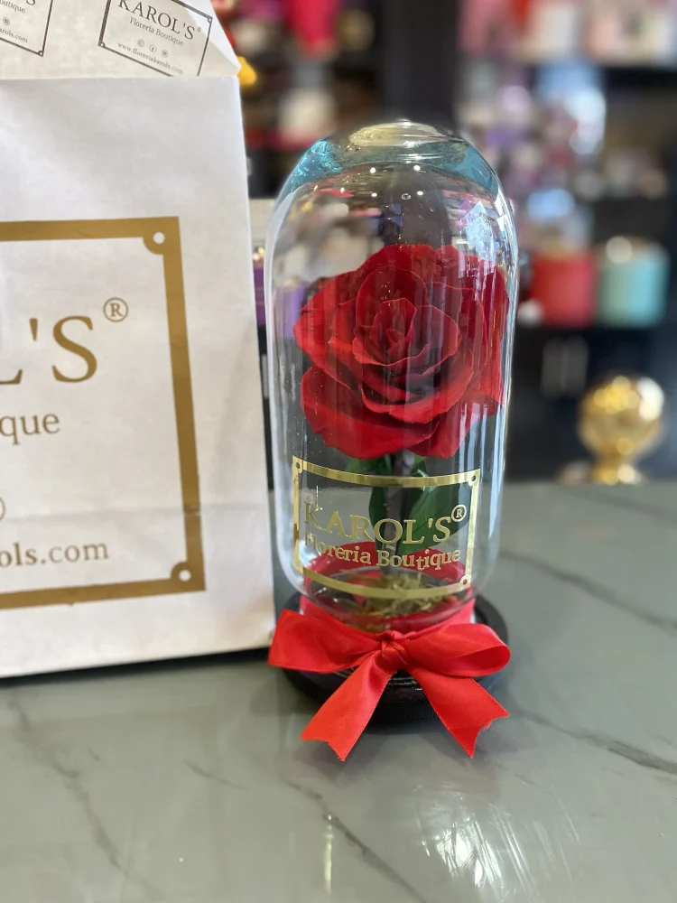 HERMOSA ROSA NATURAL DESHIDRATADA ENCAPSULADA DE LA BELLA Y LA BESTIA TIEMPO DE DURACIÓN 5 AÑOS